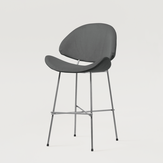 Krzesło barowe Cheri Bar Velours Chrome Low - Ciemnoszare