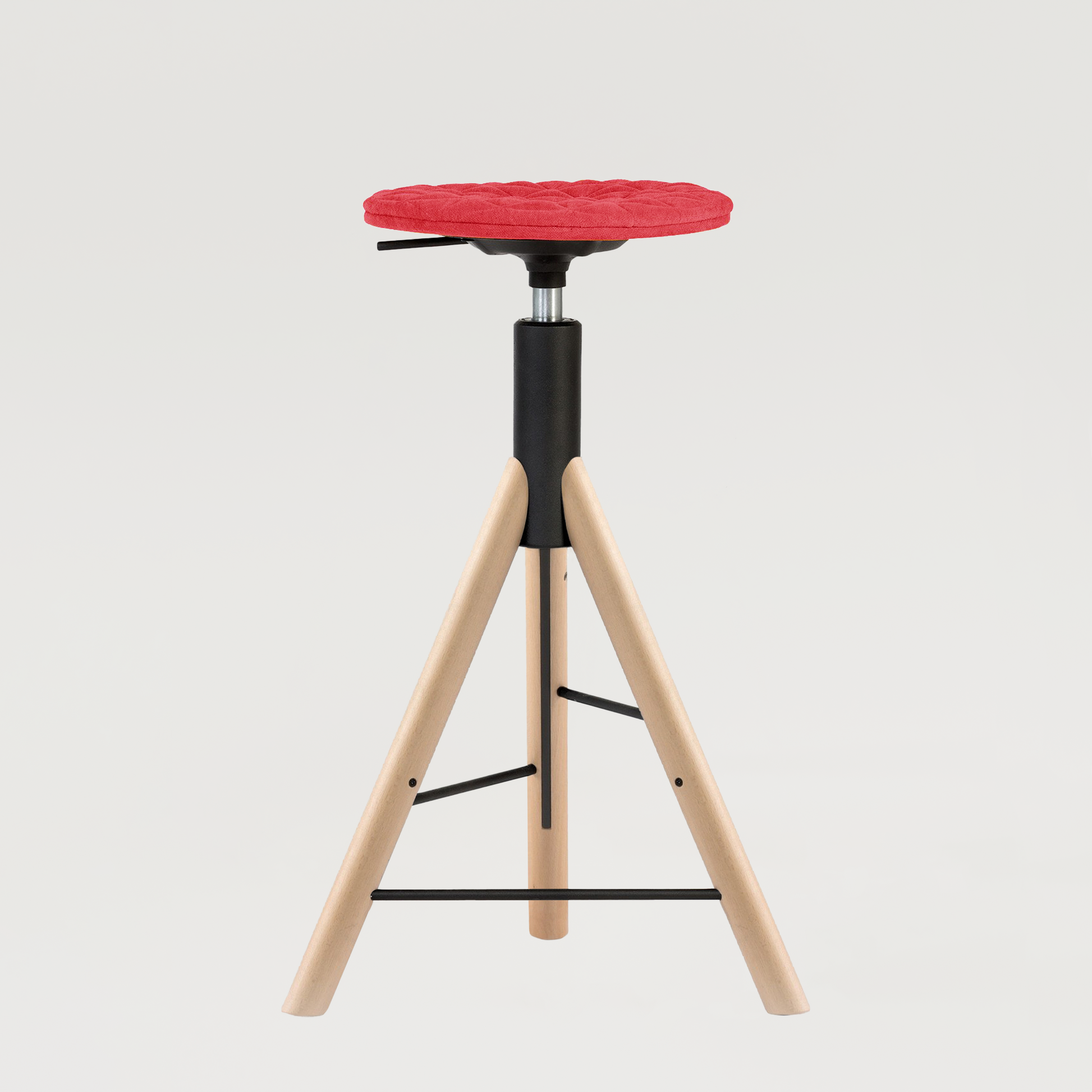 Podstawa - owalne nogi z drewna bukowego połączone metalowymi poprzeczkami, mechanizm montowany w podstawie siedziska umożliwiający regulację wysokości